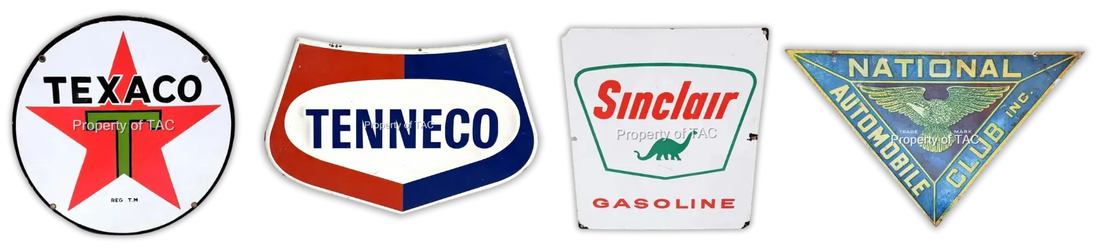 Petroliana is a classification of items related to advertising the gas industry. Items can include gas pumps, gas globes, signage, thermometers, and more. They include marketing from oil companies such as Shell, Gulf, Standard Oil, Texaco, and many more. TAC specializes in authenticating Porcelain signs and metal signs.